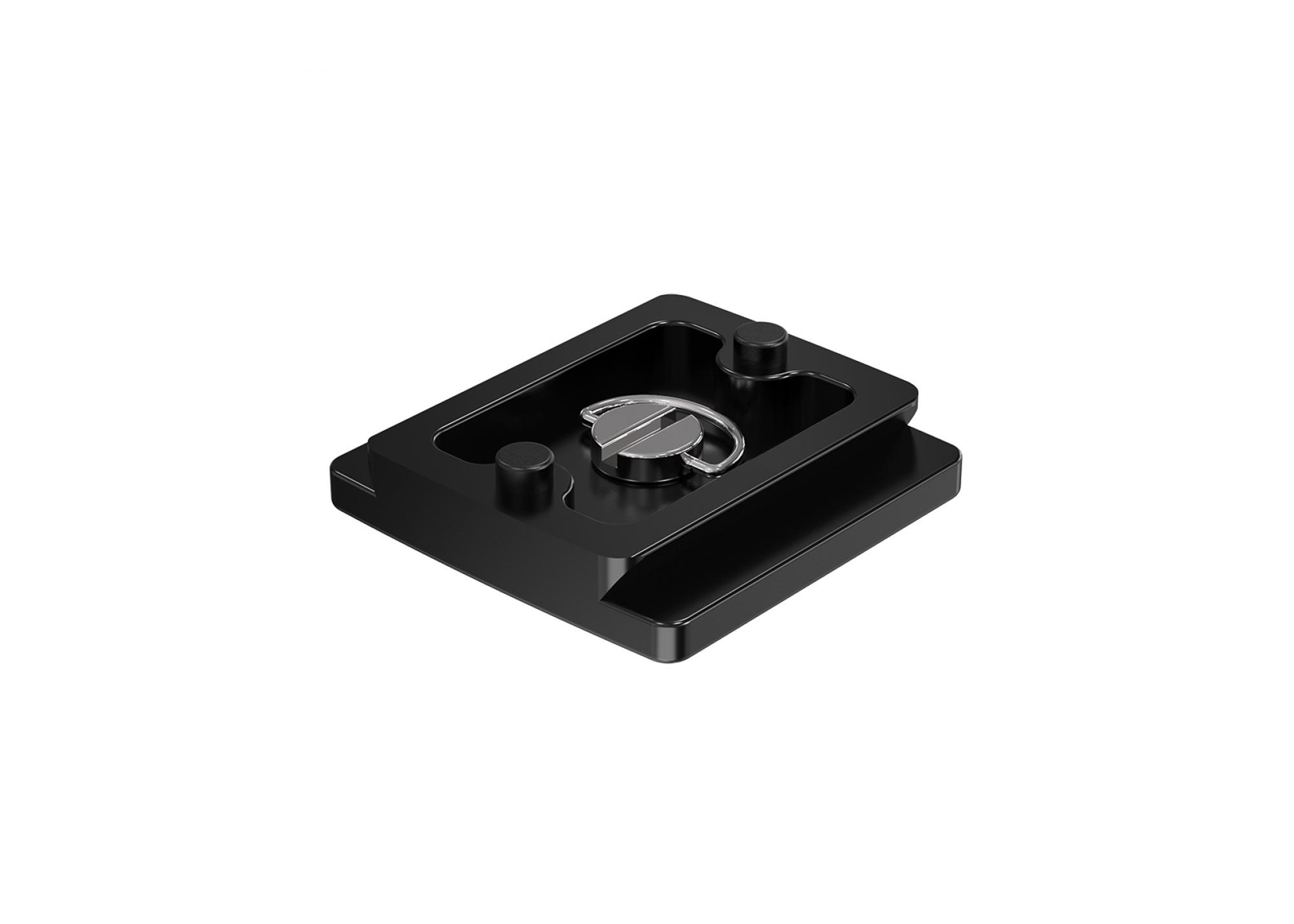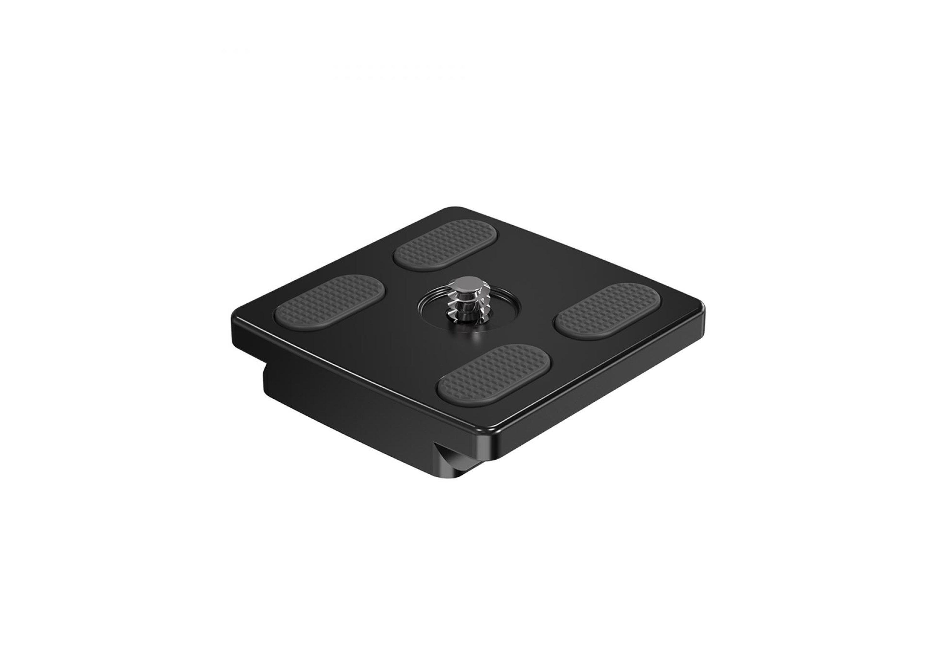 Universal quick-release tripod plate compatible with Arca-Swiss systems.